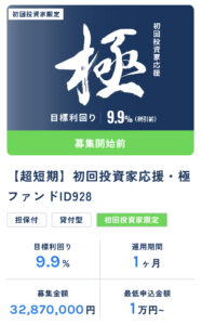 1ヶ月の超短期で利回り9.9%(税引前)の人気ファンドが登場しています。先着順です。