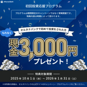 ※特典は、翌月下旬頃にオルタナバンクのデポジット口座へ入金