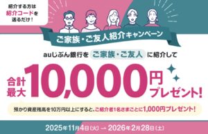 auじぶん銀行をお得に開設!紹介コード・特典内容・口座開設手順