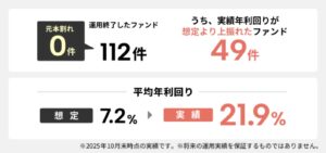 COZUCHIは独自のポリシーによって配当リターンに上限を設けておらず、運用期間が短縮されたり、想定利回りを大きく上回るファンドが多数でています。
