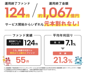 配当リターンに上限を設けない独自の方針により、ファンドの利益次第では想定利回りを超えた配当がもらえることで、非常に人気の高いクラファンサービスです。
