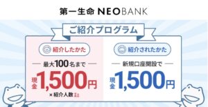 【毎月最大1,170円分】第一生命NEOBANKの紹介コード・使い方