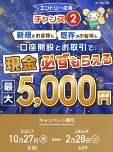 エントリーして条件を達成すると、最大5,000円の現金プレゼント開催中です。(詳細)