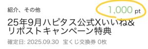 ハピタスでは、Xのいいね&リポストキャンペーンや、広告の初回利用など、簡単な条件でポイントもらえるキャンペーンが不定期(ゲリラ的に)で行われています。