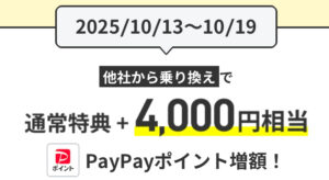 ※ソフトバンク・ワイモバイル・LINEモバイルからの乗り換え、LINMOプラン変更は対象外、一部キャンペーンとの併用不可