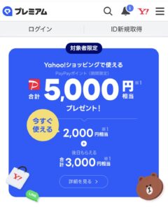 登録と同時に、ヤフショで使える2,000円分PayPayポイントもらえる!