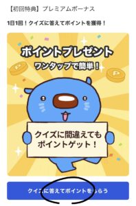 初回特典のクイズに答えると、最大200円分ポイントもらえます。