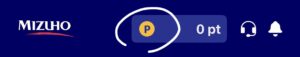 口座開設完了後、アプリに表示された「Pマーク」をタップすると、みずほポイントモールに遷移します。