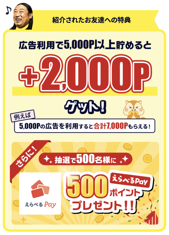 紹介リンク経由で登録すると、最大2,500円分の特典付き!
