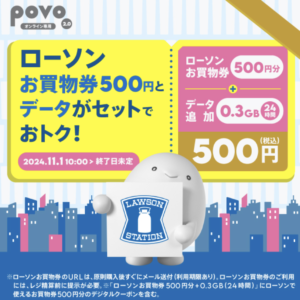180日以内に継続目的でトッピングするなら、ローソンのお買い物券500円分と0.5GB(24時間有効)がセットになった500円のトッピングがおすすめです。