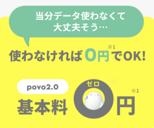 povo2.0は基本料0円で持つことができ、使いたい時に使いたい分だけトッピングして利用できるので、特にサブ機や副回線での使い勝手が良いです。180日以内に1回以上のトッピング購入をすることで、継続して利用できます。