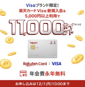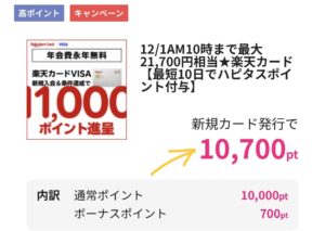 <12/1朝10:00まで>楽天カード新規で合計21,700円分もらう手順