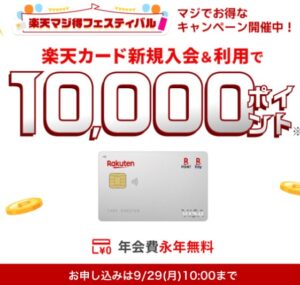楽天カードをお得に発行する方法(9/29朝10:00まで)