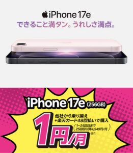 1円レンタルは、iPhone 16e/iPhone 17eどちらかを1人1回まで適用可能です。他のポイントプレゼントキャンペーンとの併用は不可です。