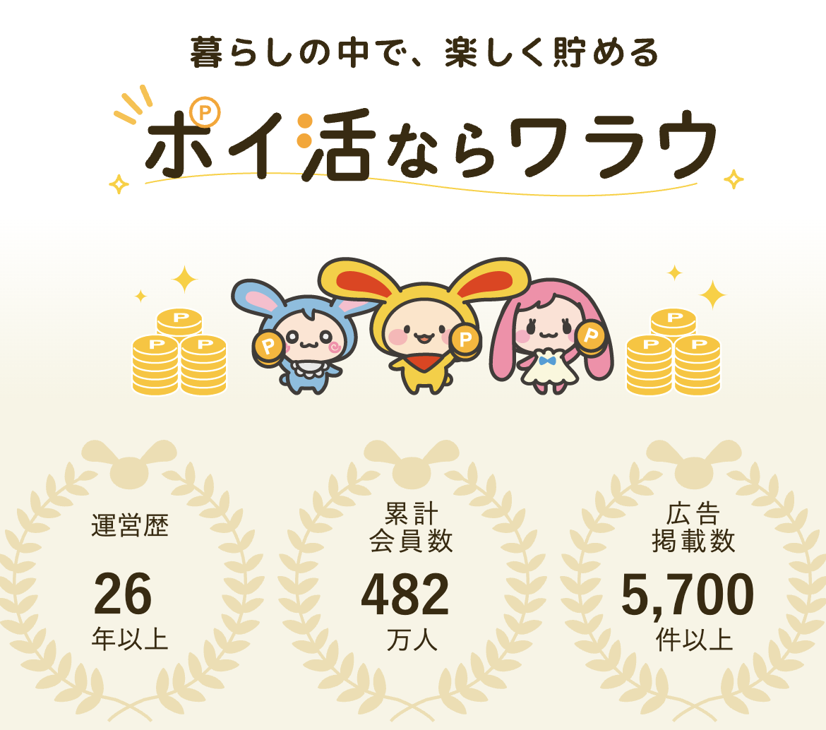 ワラウ」は、広告の利用やアンケート回答などでポイントが貯まるポイントサイトです。