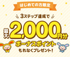 - 「はじめての方ミッション」をクリアで最大500円分ポイント